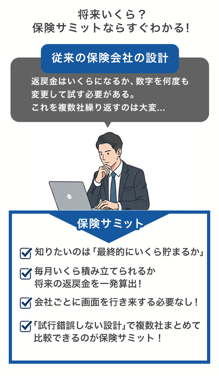 保障内容を入力するだけで、 条件に合ったプランを自動作成します。 主契約・特約を含めて、 提案機会を最大化できます。